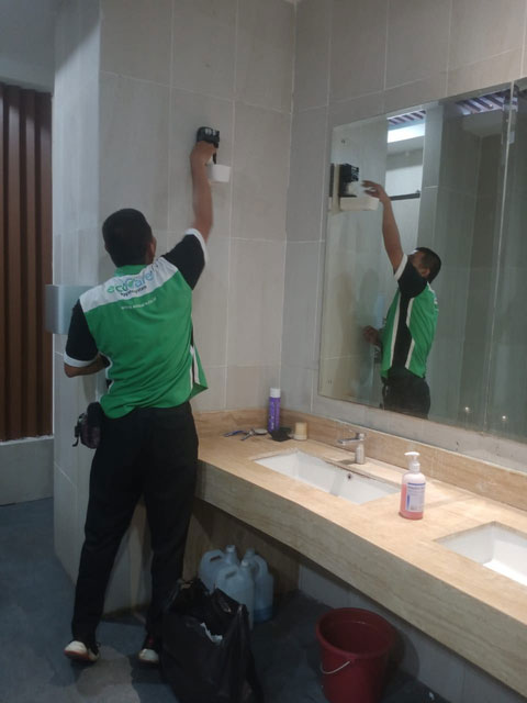 Pemasangan Pengharum Ruangan Otomatis: Menyediakan dan memasang dispenser pengharum ruangan otomatis yang dapat disesuaikan untuk menyemprotkan aroma segar secara berkala.